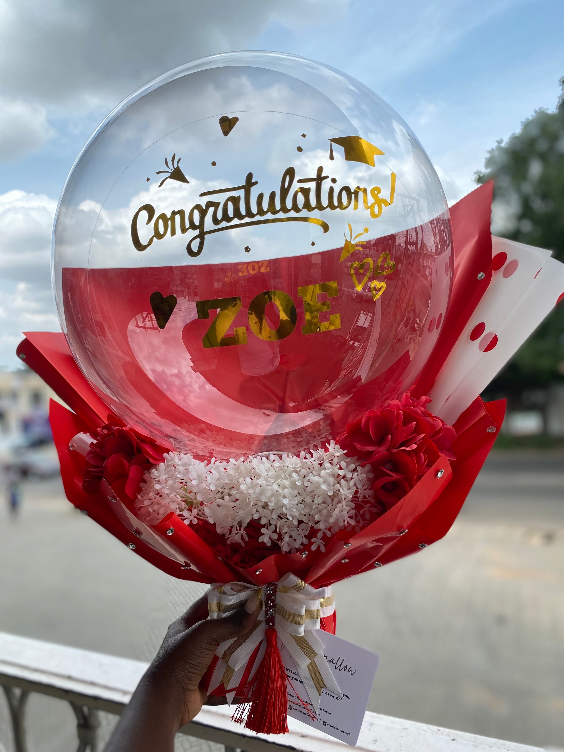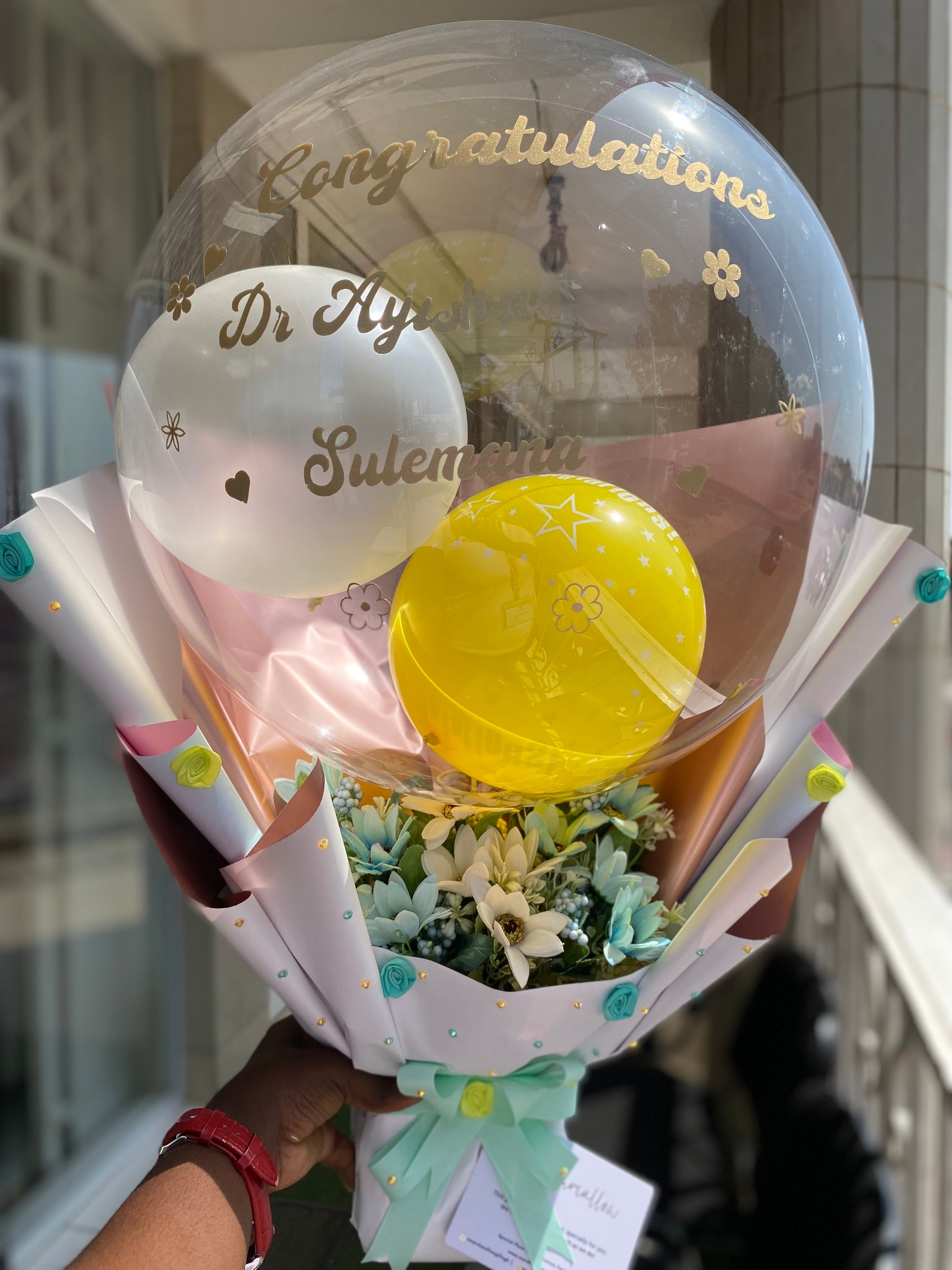 Our stunning Bubble Bouquet features a beautiful bubble balloon, perfect for all genders and occasions. This bouquet is sure to make your loved one feel special. Delivery available only in Accra and Tema.