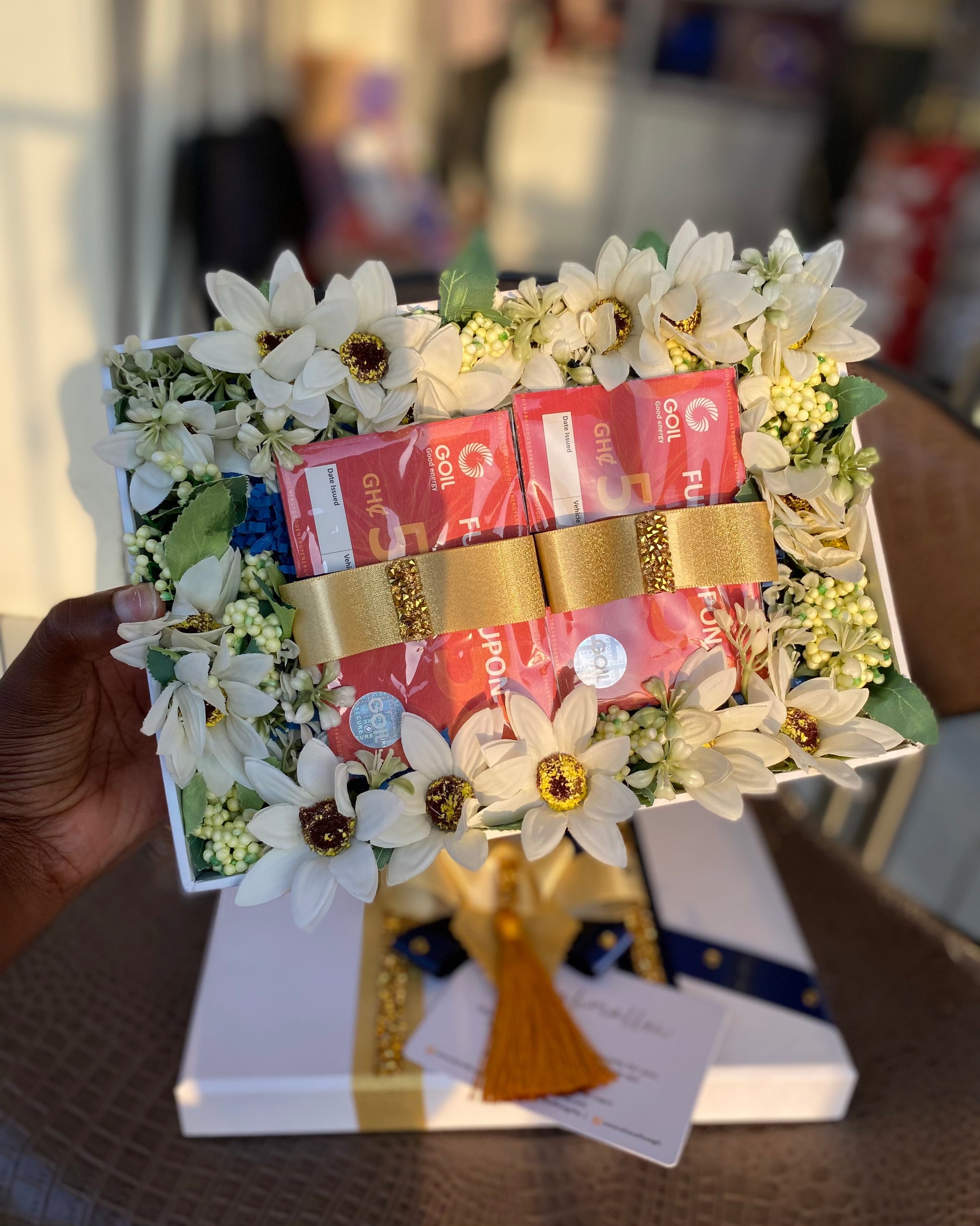 The box and wrapping cost 150-200 cedis, depending on the quantity of coupons.