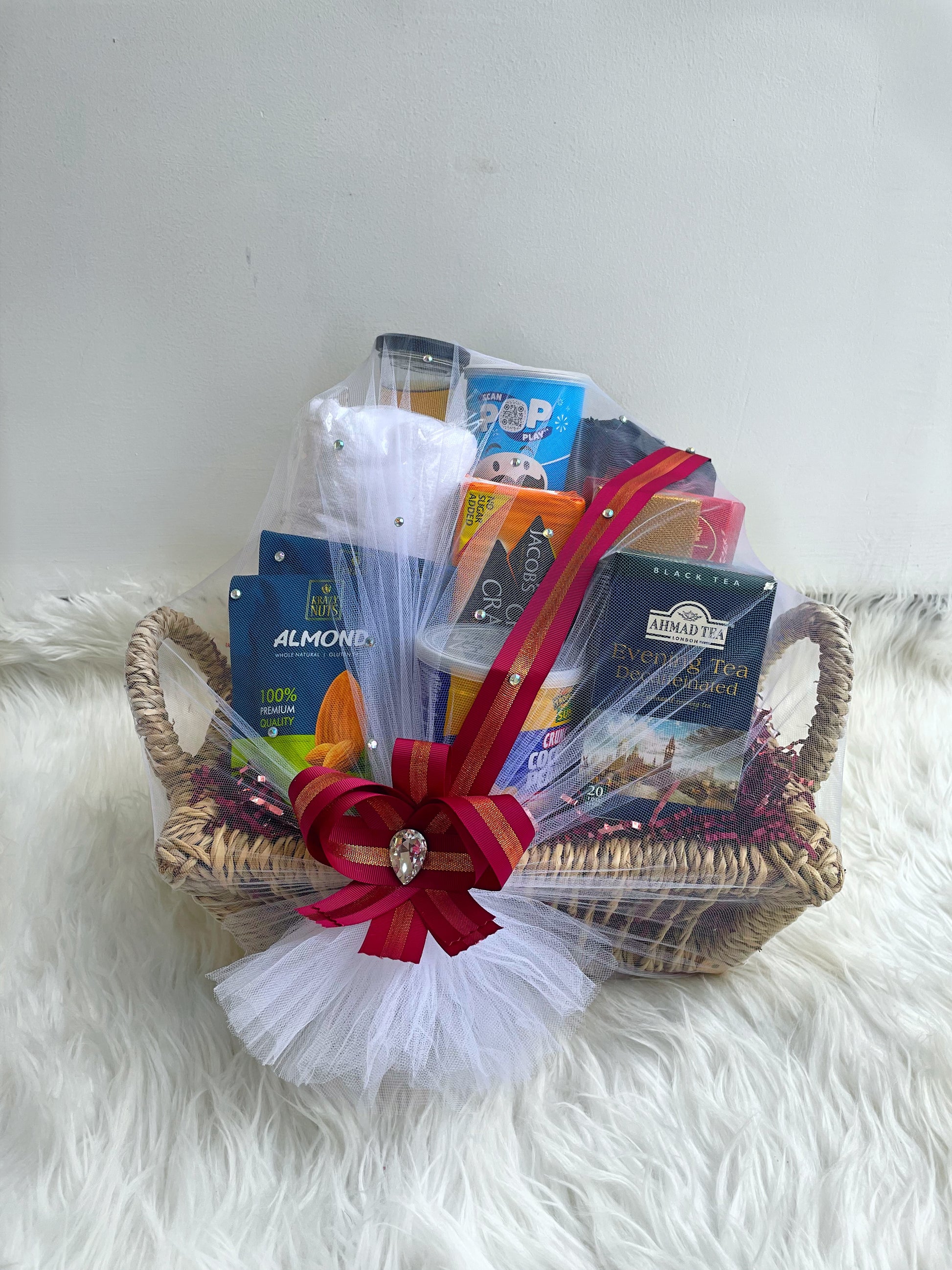Elevate your gifting with our Standard set—a thoughtfully curated collection nestled in a charming brown cane basket. This versatile gift combines premium nuts, aromatic tea, refreshing juice, and crispy crackers, all complemented by a soft towel. Perfect for corporate clients, housewarmings, or anyone who appreciates quality essentials, this basket delivers both practicality and elegance. Whether you're celebrating a milestone or expressing gratitude, the Standard set makes an impression that lasts.